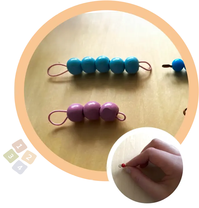 Покажете на детето как се държат – отстрани за телта, така че да не се закрие някое мънисто при преброяването.